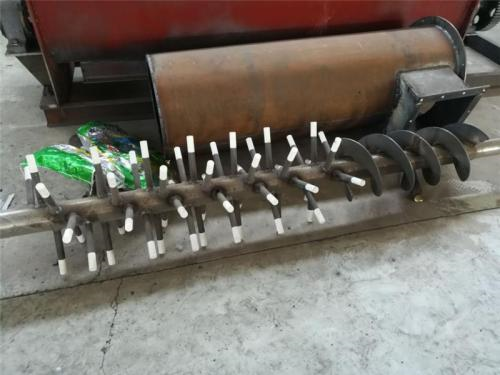 同時(shí),還可在出料口料槽端部安裝一小段反旋向葉片,以防端部堵料。對(duì)進(jìn)入粉塵加濕攪拌機(jī)的物料進(jìn)行必要的清理,以防止大雜或纖維性雜質(zhì)進(jìn)入機(jī)內(nèi)引起堵塞。